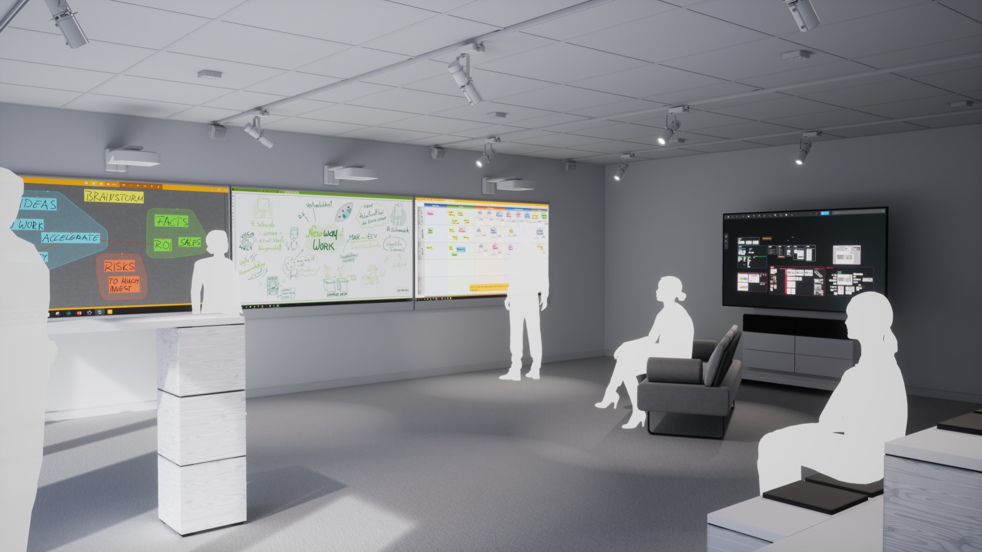 macomVIZ ist eine interaktive Echtzeit-Anwendung zur Visualisierung der ‘future-work’-Raumtypen der macom GmbH. Mit hohem visuellen Qualitätslevel veranschaulicht die Experience die verbaute AV Technik, vermittelt einen wahrnehmungspsychologisch einwandfreien räumlichen Eindruck und schafft eine wasserdichte Entscheidungsgrundlage.